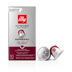 Illy Intenso voor Nespresso laat koffieliefhebbers thuis genieten van een krachtige espresso-ervaring. Met een karakteristiek donker gebrand profiel, biedt elke capsule een duik in een rijke smaaksensatie die de zintuigen prikkelt en verkwikt. De intense, rijkdom verenigt een licht bittere toets...