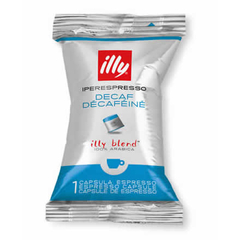 illy, Iperespresso, Cafeïnevrij singlepack, (100 capsules)v De unieke illy-blend behoudt zijn eigenschappen ook in de cafeïnevrij versie. Het cafeïnegehalte van deze koffie is niet hoger dan 0,1%. Een verpakking bevat 100 Iperespresso koffiecapsules, cafeïnevrij